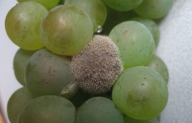 Заболевание развивается на ягодах винограда в период их созревания, в особенности в дождливую и сырую погоду. Поражённые ягоды буреют, после чего сморщиваются и покрываются густым налётом серого цвета. Гнилью охватывается вся гроздь. Развиваясь на соцветиях, болезнь вызывает их засыхание.